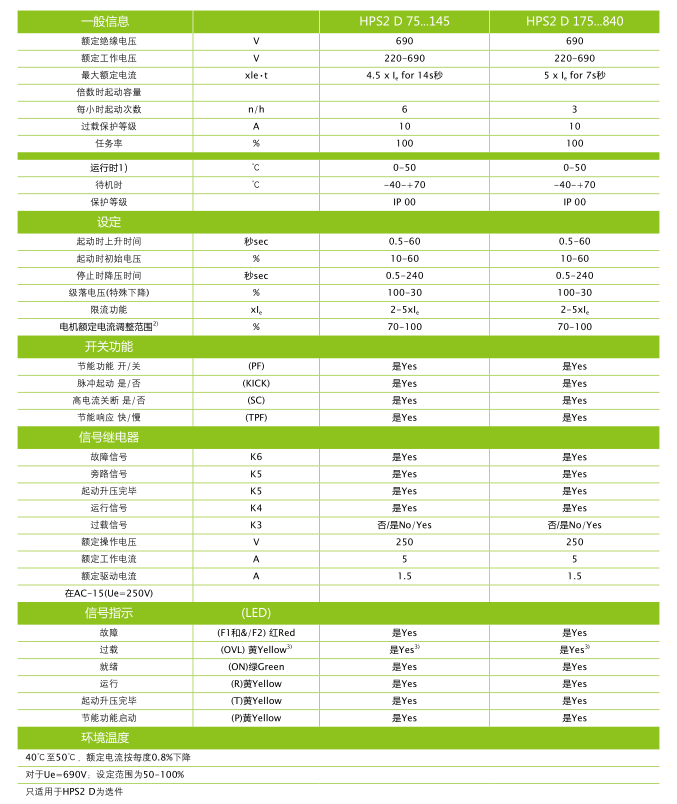 HPS2D75...840HPS2DH30...720 軟起動器均有著堅固的金屬殼體設(shè)計,可分別適用于常規(guī)負(fù)載和重型負(fù)載的各種應(yīng)用場合它結(jié)構(gòu)牢固緊湊,安裝方便快捷。所有參數(shù)和功能選項均通過前面板上的調(diào)節(jié)電位器和功能切換開關(guān)來設(shè)定和選擇。直觀清晰,各工作階段和狀態(tài)及故障均有相應(yīng)LED 指示讓用戶一目了然。特設(shè)節(jié)能功能,當(dāng)電機(jī)運(yùn)行在空載或輕載時自動降低負(fù)載電壓,